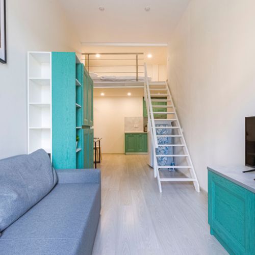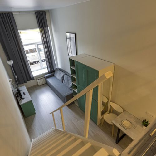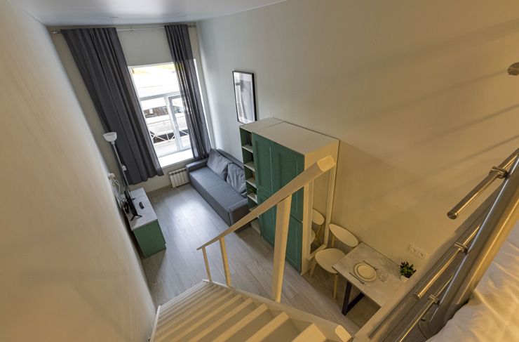 Апартаменты расположились в четырехэтажном историческом жилом доме на Подъездном переулке. К услугам гостей 6-местный двухуровневый номер с современным интерьером. В апартаментах есть кухонная зона с электроплитой, электрочайником, микроволновой печью, где гости смогут приготовить и разогреть еду. В персональном санузле установлен душ, приготовлены косметические принадлежности и фен. Среди прочих удобств – стиральная машина и высокоскоростной интернет.